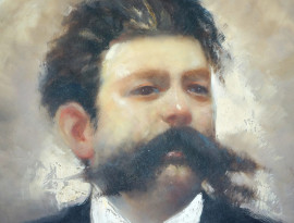 Ritratto d'uomo con papillon, dipinto ad olio su placca ovale in porcellana, cm 42x36, fine XIX secolo, (segni del tempo).