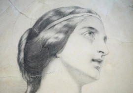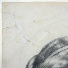 Santa, disegno a matita su carta, cm 34,5x25, inizi XX secolo, entro cornice.
