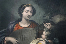 S.Cecilia da Domenichino (1581-1641), stampa a colori, cm 31x23, XX secolo, entro cornice.