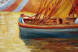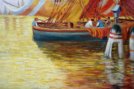 Scorcio di Laguna, olio su tavola, cm 16,5x31, firmato, entro cornice.