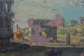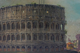 Scorcio sul Colosseo, olio su rame, cm 22,5x35,5, prima metà XX secolo, entro cornice, (cadute di colore).