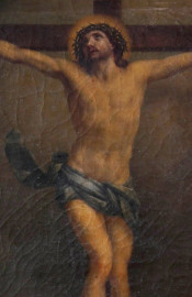 Scuola Bolognese, Crocifissione, olio su tela, cm 51x72, prima metà XVII secolo.