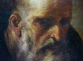 Scuola emiliana del XVII-XVIII secolo, S. Antonio Abate, olio su tela, cm 54x40, (lievi difetti).