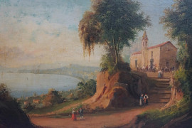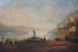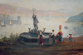 Scuola napoletana del XIX secolo, Veduta di Ischia e del Golfo di Napoli, cm 39x65, entro cornici
