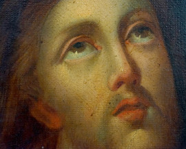 Seguace di Carlo Dolci (1616-1687), Testa di Cristo, olio su tela, cm 28x22, entro cornice