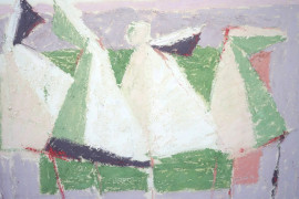 Senza titolo, tempera su carta, cm 55,5x75,5, firmato, entro cornice.