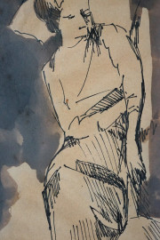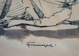 Senza titolo, tre tecniche miste su carta entro un'unica cornice, misure ingombro tot cm 19x26,5, firma Fumagalli, entro cornice.