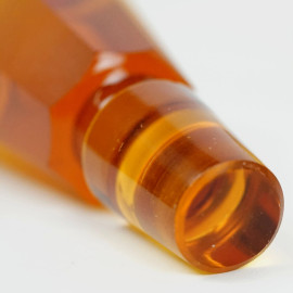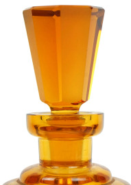 Servizio da liquore déco, in vetro arancio, composto da una bottiglia e quattro bicchierini, alt. max cm 22.