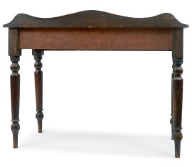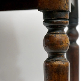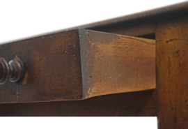 Tavolo scrittoio in noce, fine XIX secolo, a due cassetti, gambe tornite, cm 81x105,5x46,5