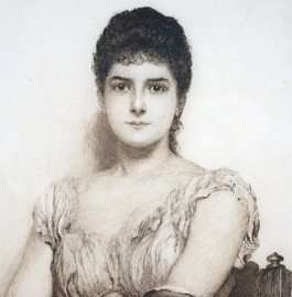 The Lady in White (Miss Grant), acquaforte, cm 69,5x54,5, firmato Hubert von Herkomer, entro cornice.