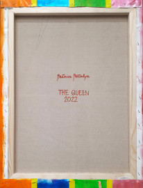 The Queen - omaggio alla Regina Elisabetta, tecnica mista su tela, cm 65x50, firma titolo e anno al retro, con autentica