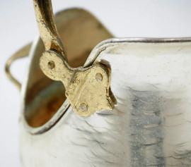 Tre grandi secchielli da carbone in metallo argentato e dorato, cm h 39x24x30, XX secolo, (difetti)