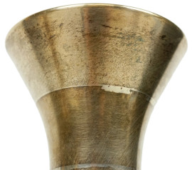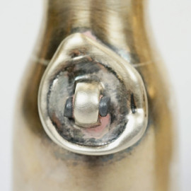 Trittico di bottiglie in argento Bulgari, anni '70, corpi a superficie liscia con particolari cesellati, alt. cm 27, cm 22,5 e cm 17. Titolo 925, punzone Bulgari, peso tot. gr 2177