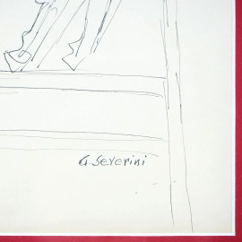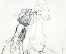 Uomo a cavallo, inchiostro su carta, cm 25x20, firmato, entro cornice.