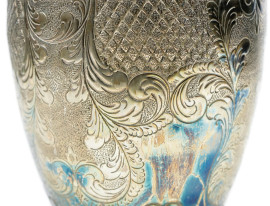 Vaso in argento, corpo a balaustro, decori sbalzati e cesellati, cm h 32, XX secolo, peso gr.1150
