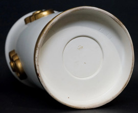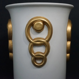 Vaso in ceramica bianca con particolari dorati, cm h 32, XX secolo