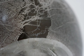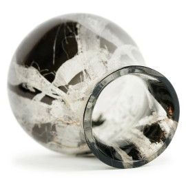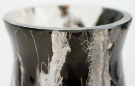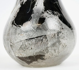 Vaso in vetro nero ed iridescente con collo svasato, cm h 24,5, firmato Wiegel 23 sotto la base, (sbeccatura sull'orlo).