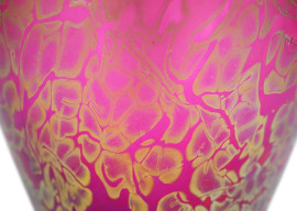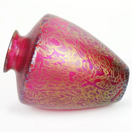 Vaso in vetro viola tipo Royal Briarley, decoro dorato iridescente, cm h 20,5, XX secolo.