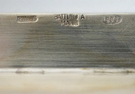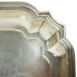 Vassoio in argento battuto a mano, XX secolo, cm 40x28,5 peso gr. 880