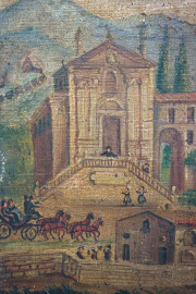Veduta con figure, olio su tela, cm 26x47, inizi XX secolo, (difetti).