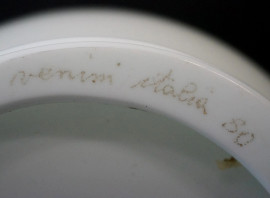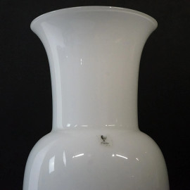 Venini, vaso in vetro bianco di Murano, XX secolo, cm h 29,5, firma "Venini Italia 80" sotto la base, (sbeccatura alla base)