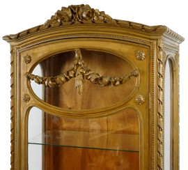Vetrina stile Luigi XV, in legno scolpito e dorato, ad uno sportello, gambe rastremate, cm 182x61,5x39, XX secolo