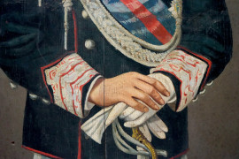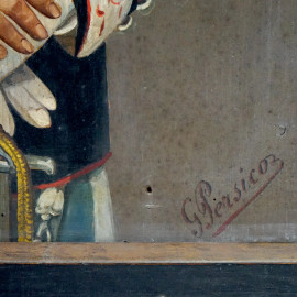Vittorio Emanuele III, olio su tavola, cm 84x65, firmato G.Persico, entro cornice, (difetti).