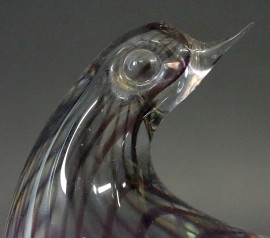 Volatile, scultura in vetro di Murano, seconda metà XX secolo, cm h 28