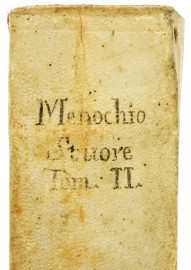 Volume "Trattamenti euditi del P.Gio.Stefano Menochio della Compagnia del Gesù",Tomo II, Roma, MDCLXXXIX, (difetti e macchie).