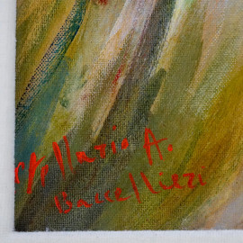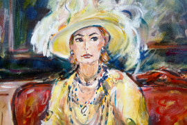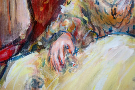 Ritratto di donna seduta, olio su cartone telato, cm 60x45 circa, entro cornice.