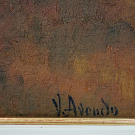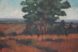 Campagna, olio su tavola, cm 21,5x42, firmato, entro cornice.