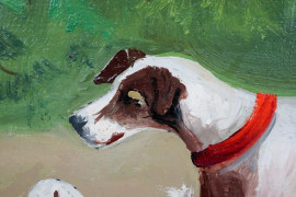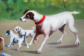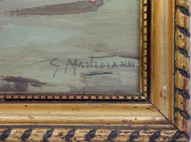 Cani, olio su tavola, cm 18x24, firmato Mastroianni, entro cornice