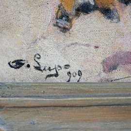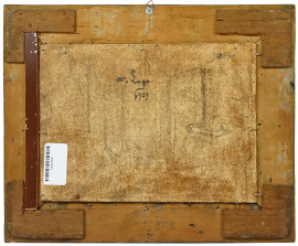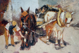 Carretto con figura, olio su tavola, cm 22x30, firmato e datato, entro cornice.