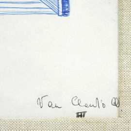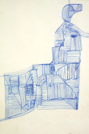Uomo uccello prigioniero, penna su carta, cm 27,5x20, entro cornice.