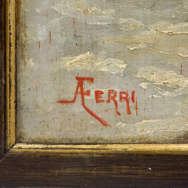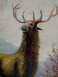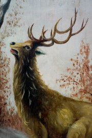 Cervi, coppia di dipinti ad olio su tavola, cm 74,5x23, firmati A. Ferri, entro cornici