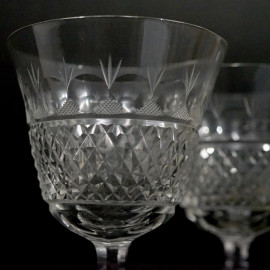 Cinque calici in vetro, alt.cm 17,5, XX secolo.