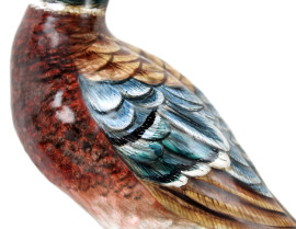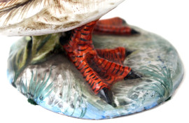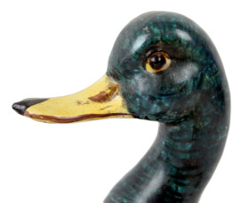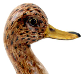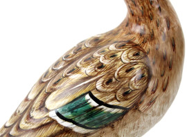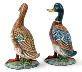 Coppia di papere in ceramica dipinta, cm h 29,5, XX secolo, (lieve sbeccatura).