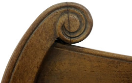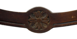 Coppia di sedie in noce, XIX secolo, cartella a giorno intagliata, sedute rivestite in raso, gambe mosse ed a sciabola, cm h 89,5, (difetti).