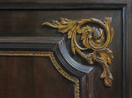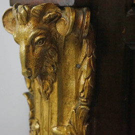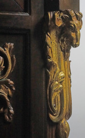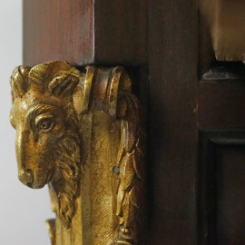 fronte ad un cassetto e due sportelli, con applicazioni in bronzo dorato a tralci vegetali e di teste d'ariete, finiture in bronzo dorato, piedi a cipolla, cm h 113x130x60,5, (difetti).