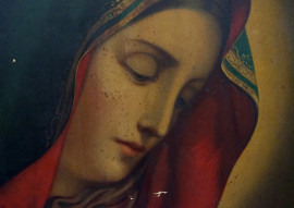 Da Carlo Dolci (1616-1686), Madonna del dito, oleografia, cm 71,5x53, XX secolo, entro cornice, (lievi difetti).