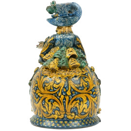 Dama, scultura in ceramica policroma, Francesco Navanzino, Caltagirone, cm h 31.