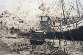 Imbarcazioni, incisione, cm 33x46, entro cornice