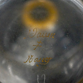 Due bottiglie porta profumo in vetro con particolari dorati, Daum Nancy, Francia, inizi XX secolo, alt. max cm 21