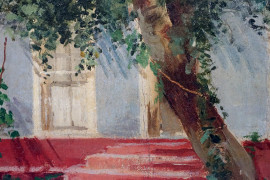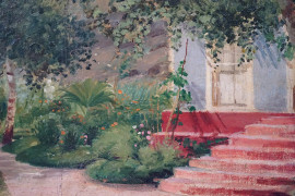 Esterno di villa, olio su tela, cm 22x27,5, prima metà XX secolo, (difetti)