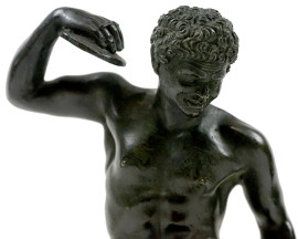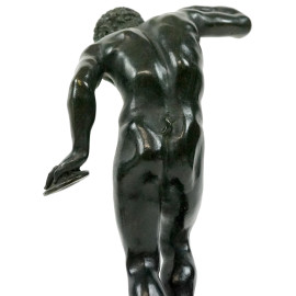 Fauno Medici, scultura in bronzo patinato, prima metà XX secolo, cm h 23, base in marmo nero, (difetti)