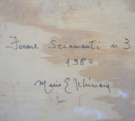Forme sciamantii n.3, tecnica mista su tavola, cm 40,5x46, firmato a tergo Mario Schinaia, entro cornice.