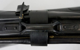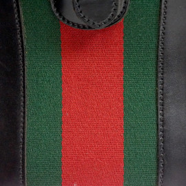 Gucci Boutique - Made in Italy, due valigie vintage in pelle nera con banda rosso e verde, cm 54x70x20 e cm 45x57x17, (segni di utilizzo)