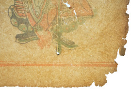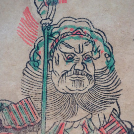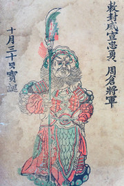 Guerriero, xilografia a colori su carta, cm 26x14,5, arte orientale, entro cornice, (difetti e macchie sulla carta)