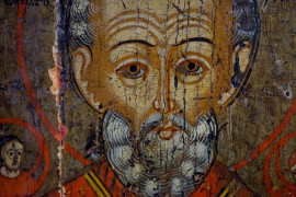 Icona raffigurante San Nicola, Russia, XIX secolo, tempera su tavola, cm 28x21,5, (difetti).