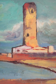 Il faro, olio su tavola, cm 14x28, firmato, entro cornice